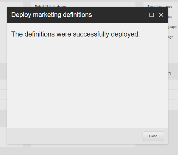 The next thing to do is to hit the button again in for deploying the marketing definitions.